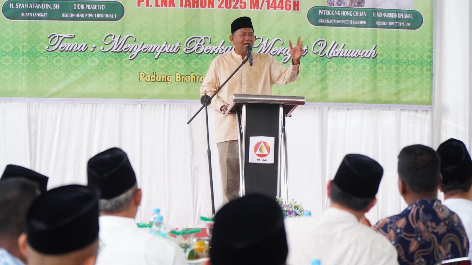 Pererat silaturahmi dan kolaborasi di bulan suci Ramadan, Bupati Langkat Syah Afandin buka puasa bersama PT Langkat Nusantara Kepong (LNK) di Masjid Nurul Hidayah, Emplasmen Kebun Padang Brahrang, Kecamatan Selesai, Jumat (21/3/25).