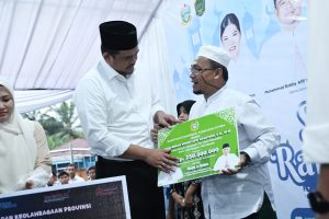 Gubernur Sumatera Utara (Gubsu) Muhammad Bobby Afif Nasution secara simbolis menyerahkan bantuan saat Safari Ramadhan di Masjid Al Ikhlas, Desa Damuli Kebun, Kecamatan Kualuh Selatan, Kabupaten Labuhanbatu Utara, Jumat (21/3/2025). Kehadiran Gubernur Sumut beserta rombongan disambut Bupati Labuhanbatu Utara Hendriyanto Sitorus, Ketua DPRD Sumut Erni Ariyanti Sitorus serta tokoh masyarakat Labuhanbatu Utara Khairuddin Syah Sitorus.