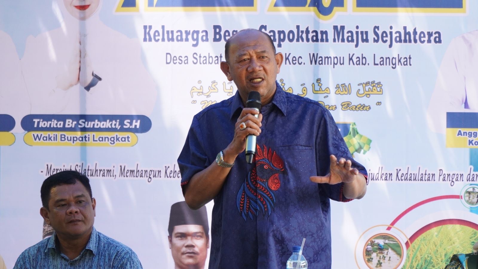 Bupati Langkat Syah Afandin bersama Wakilnya Tiorita Br Surbakti hadiri Halal Bihalal Keluarga Besar Gabungan Kelompok Tani (Gapoktan) Maju Sejahtera di Desa Stabat Lama Barat, Kecamatan Wampu, Minggu (6/4/2025).
