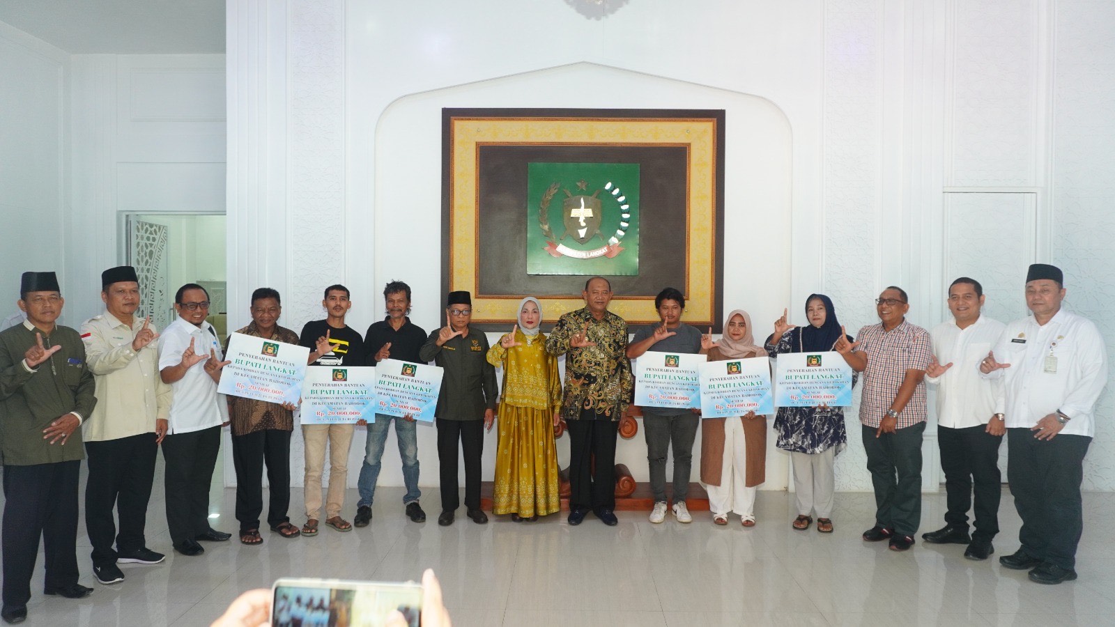 Bupati Langkat Syah Afandin, salurkan bantuan Rp 120 juta kepada 6 keluarga korban kebakaran di Jalan Ampera, Kelurahan Pekan Bahorok, Kecamatan Bahorok, Rabu (23/4/25) di Rumah Dinas Bupati Langkat. (koranmedan.com)