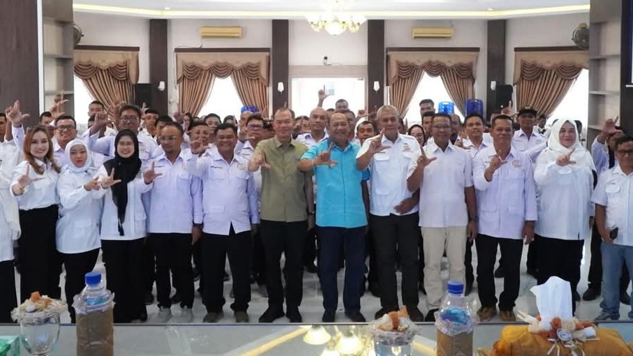 Bupati Langkat Syah Afandin hadiri pelantikan Dewan Pimpinan Daerah (DPD) Tani Merdeka Indonesia (TMI) Kabupaten Langkat periode 2025–2029 di ruang pola Kantor Bupati Langkat, Senin (12/5/2025).