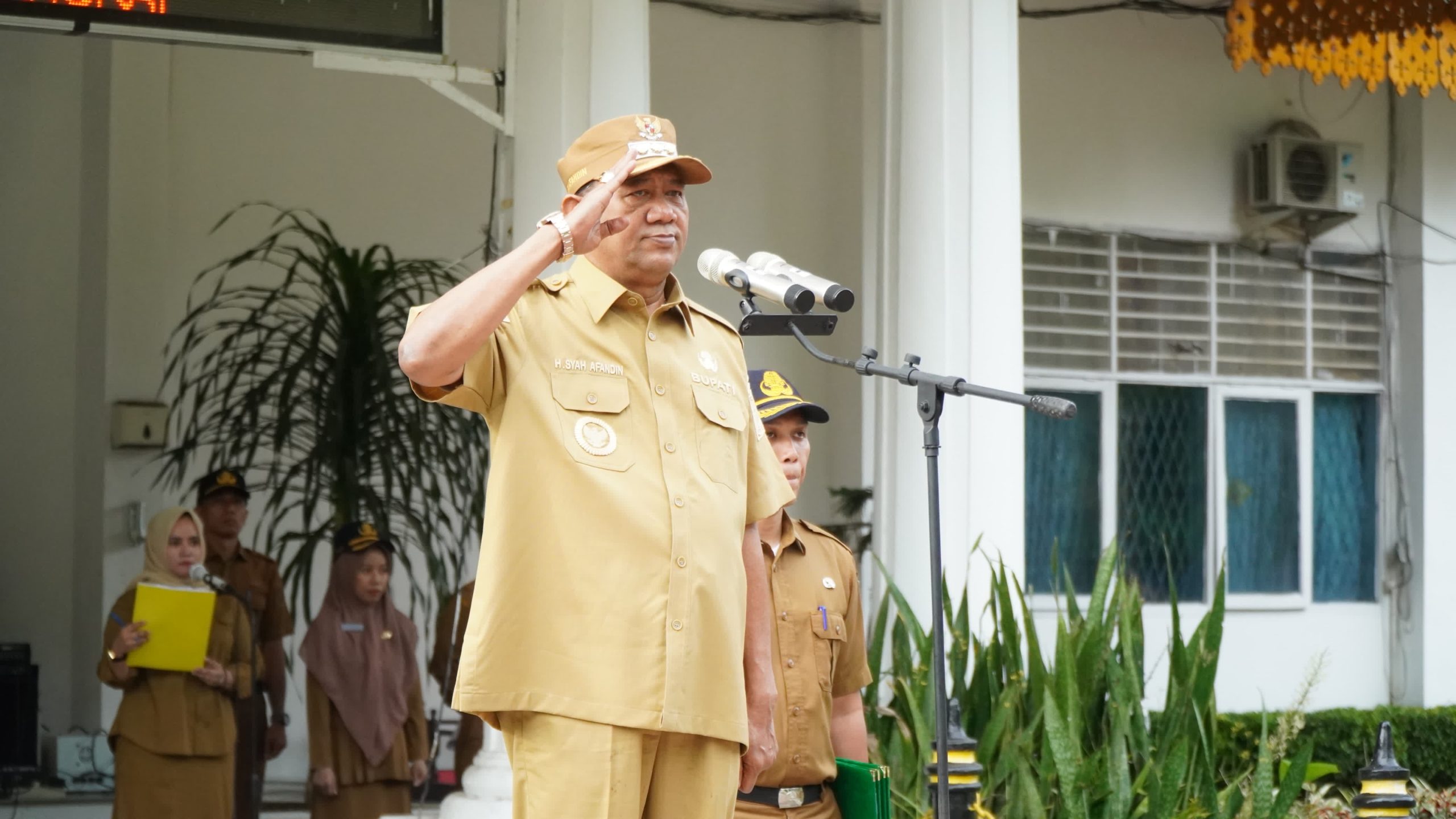 Bupati Langkat Syah Afandin pimpin apel gabungan jajaran Aparatur Sipil Negara (ASN) Pemerintah Kabupaten Langkat di halaman Kantor Bupati Langkat, Senin (19/5/2025).