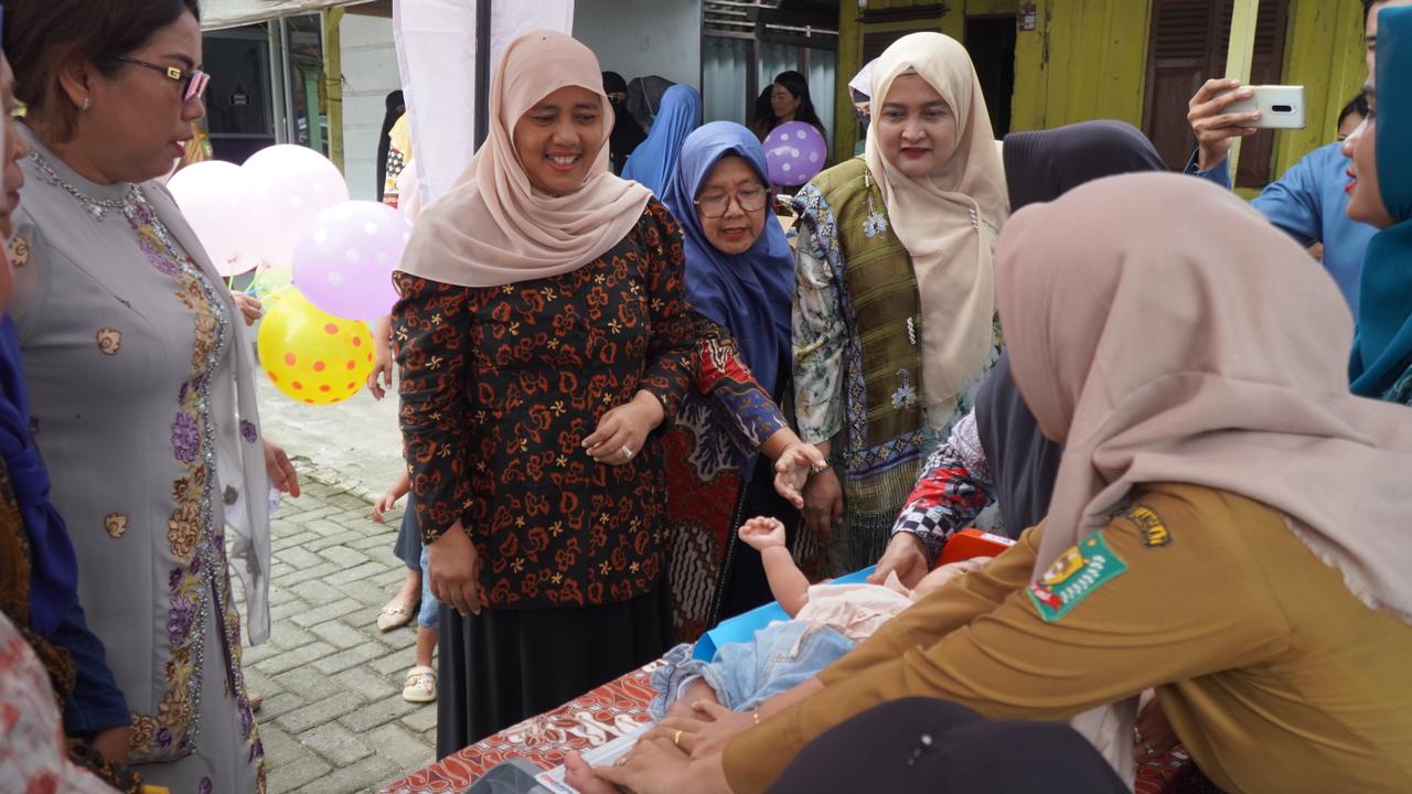 Ketua PKK Langkat didampingi Kepala Dinas Kesehatan Langkat dr Juliana, para pejabat instansi terkait, kader Posyandu, serta masyarakat sekitar yang antusias mengikuti rangkaian kegiatan.