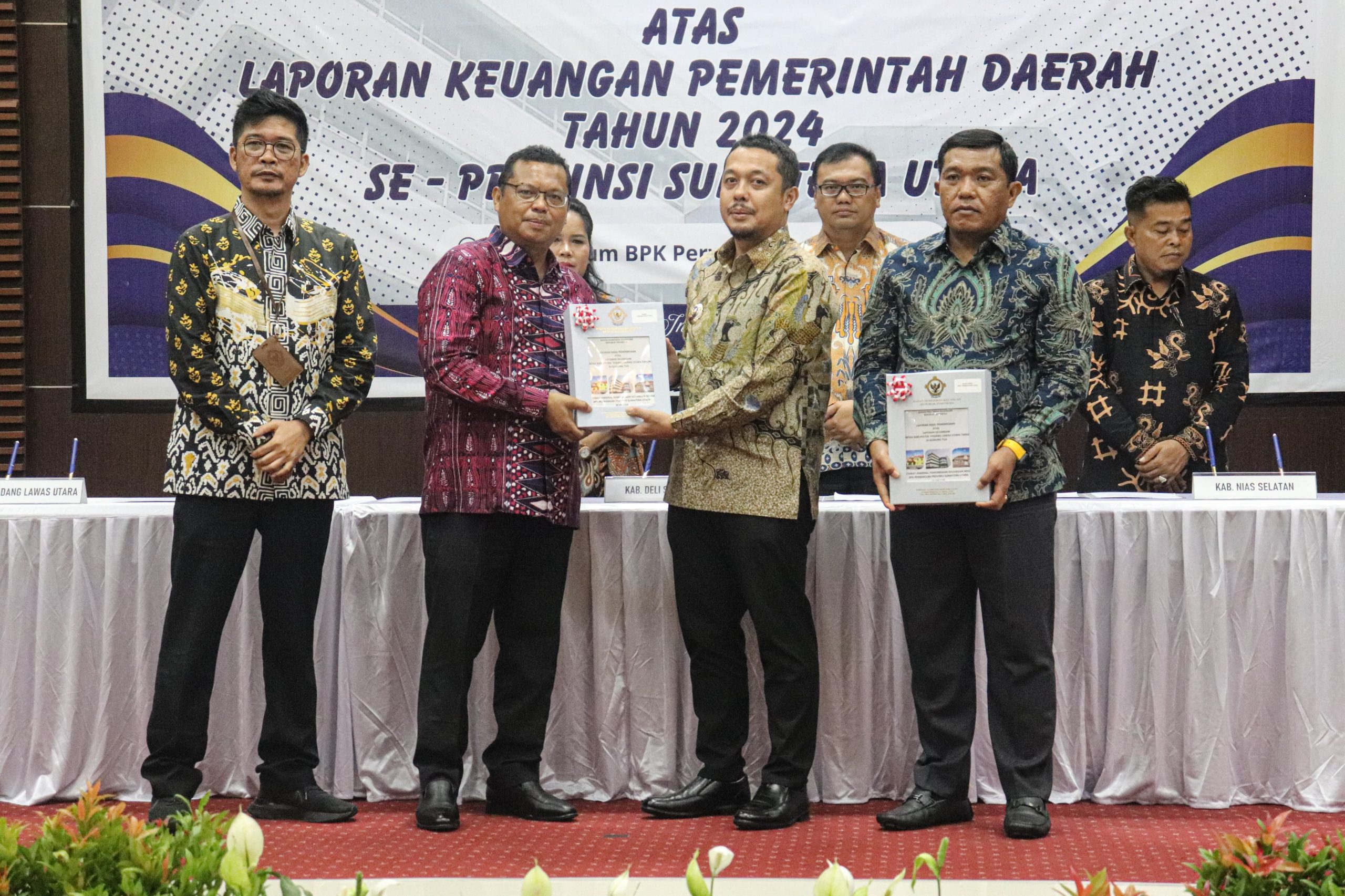 Bupati Padang Lawas Utara Reski Basyah Harahap, S.STP., M.Si., bersama Ketua DPRD Kabupaten Padang Lawas Utara Mula Rotua, S.Sos., menerima langsung Laporan Hasil Pemeriksaan (LHP) LKPD Pemerintah Kabupaten Padang Lawas Utara Tahun Anggaran 2024 dari Ketua BPK RI Wilayah Sumatera Utara Paula Henry Simatupang, S.E., M.Si., Ak., CA, CFrA, CPA (Aust), CSFA, ACPA, GRCP, GRCA, ERMAP.