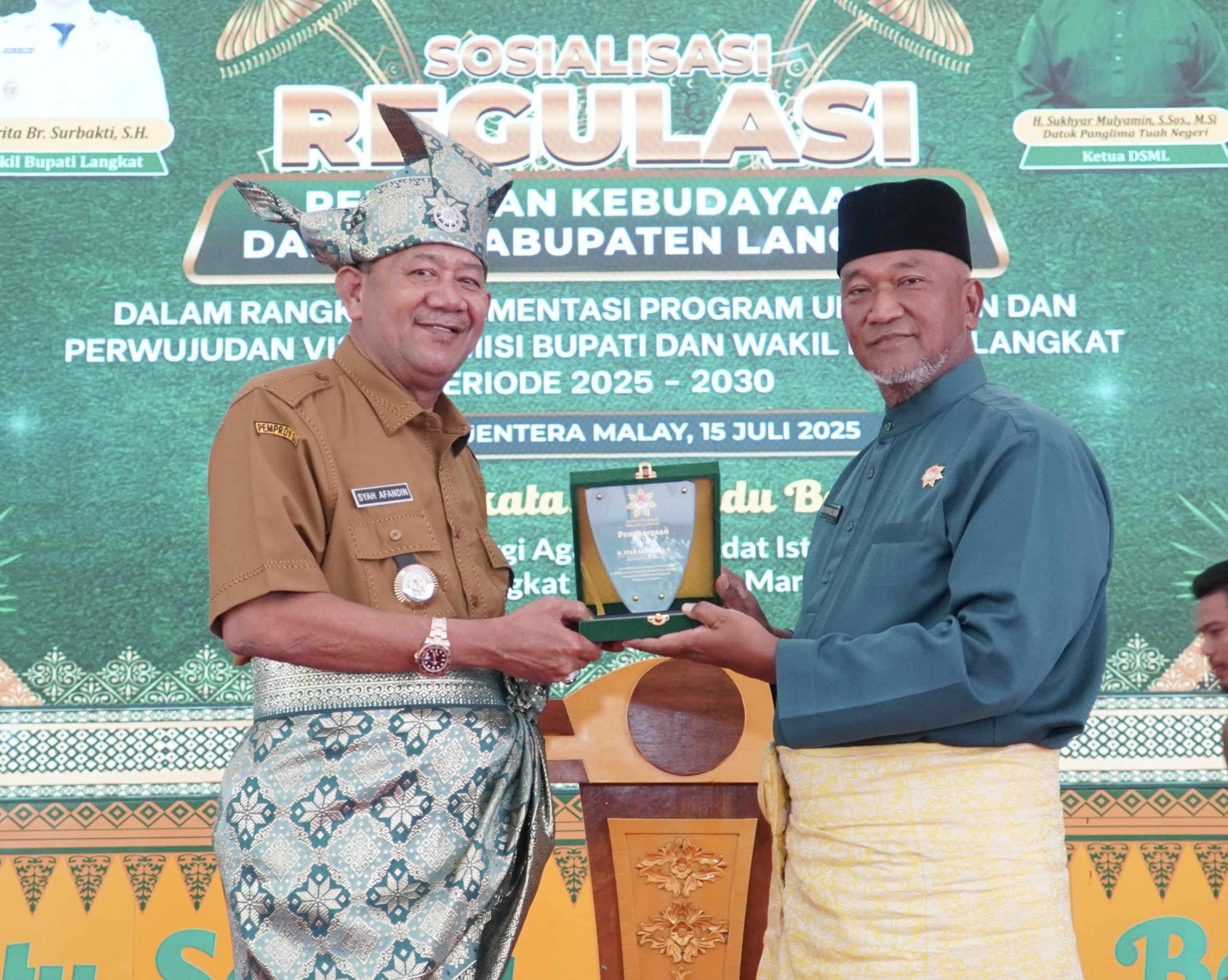 Bupati Langkat Syah Afandin membuka sosialisasi Regulasi Pemajuan Kebudayaan Daerah dalam rangka implementasi program unggulan serta perwujudan visi dan misi Bupati dan Wakil Bupati Langkat di Gedung Jentera Malay, Rumah Dinas Bupati Langkat, Selasa (15/7/2025).