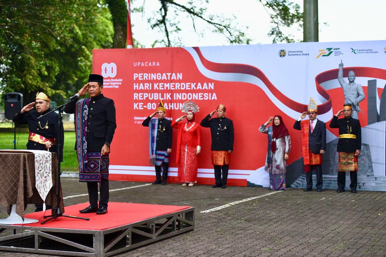 MEDAN, (koranmedan.com) – Universitas Sumatera Utara (USU) melaksanakan upacara bendera peringatan Hari Ulang Tahun (HUT) Ke 80 Kemerdekaan Republik Indonesia, yang mengusung tema “ Bersatu Berdaulat, Rakyat Sejahtera Indonesia Maju”.