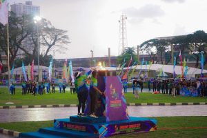 Upacara pembukaan yang ditandai pemukulan drum, pengibaran bendera dan juga penyalaan api Porkot itu berlangsung meriah disaksikan lebih dari 3.000-an warga.