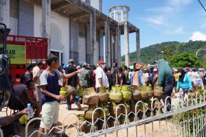 Sementara untuk gas rumah tangga, di hari yang sama telah masuk 2 truk pengangkut gas rumah tangga 3Kg. Setiap truk mengangkut 650 tabung gas dan langsung di distribusikan ke masyarakat di Pandan, tepatnya Masjid Agung Al Muslimin Tapteng, setiap warga yang telah menerima diberi tanda khusus.