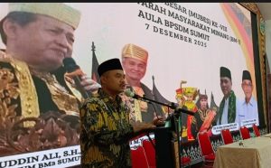 Ketua Umum BM-3 Sumut periode sebelumnya H. Syahruddin Ali, SH, M.Si ketika memberi kata sambutan mengaku bersyukur karena Mubes kali ini dihadiri 14 dari 15 perkumpulan orang Minang yang ada di Sumut, termasuk para pengurus BM-3 dari kabupaten/kota se-Sumatera Utara.