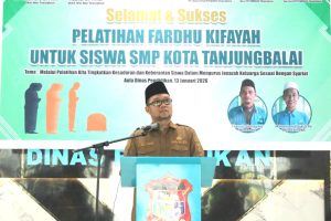 Wakil Wali Kota Tanjungbalai Muhammad Fadly Abdina membuka secara resmi Pelatihan Fardhu Kifayah bagi siswa-siswi SMP Negeri se-Kota Tanjungbalai di Aula Dinas Pendidikan Kota Tanjungbalai, Selasa (13/1/2026).