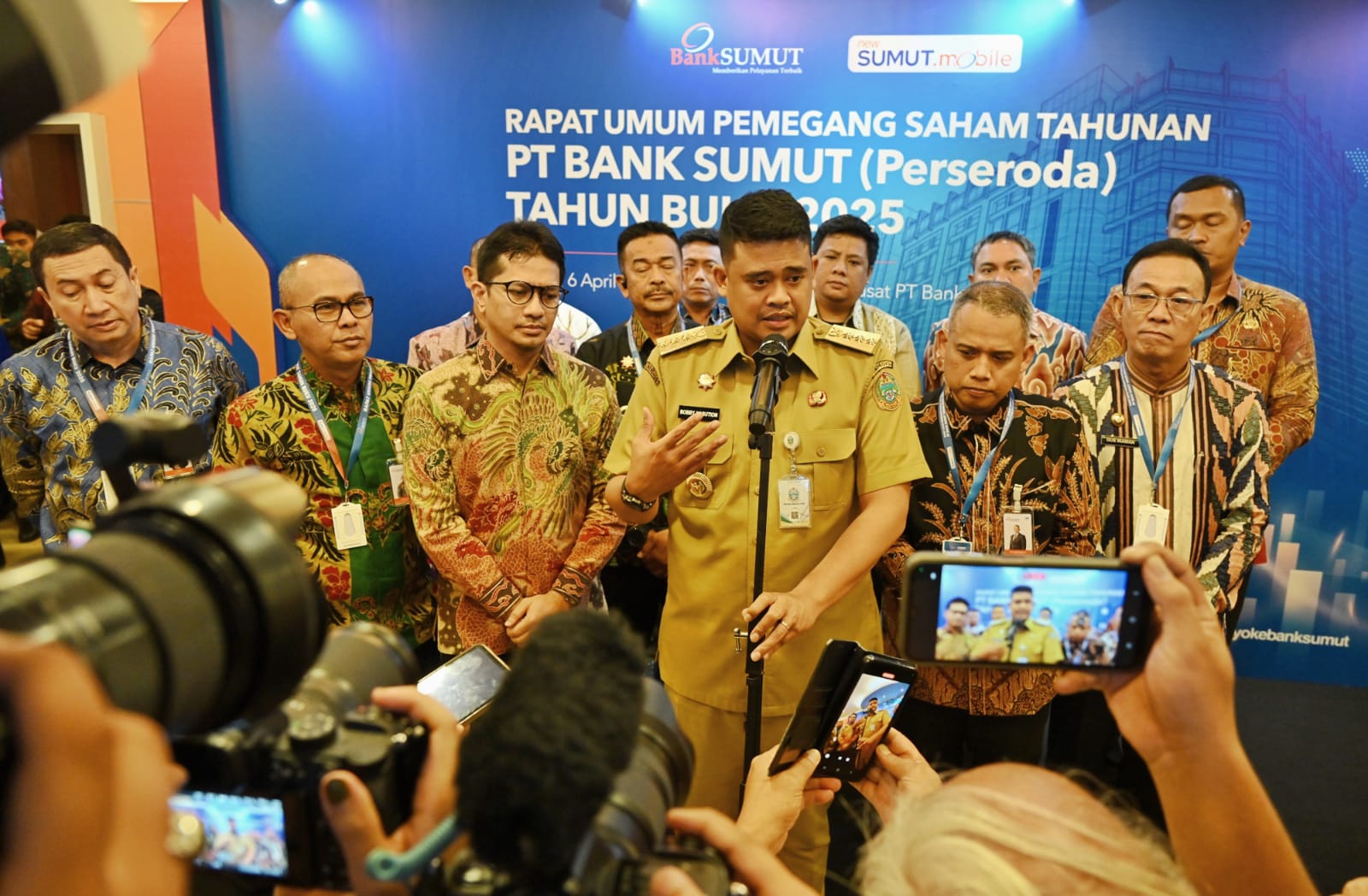 “Aturan OJK di 2029 untuk bank itu minimal Rp6 triliun, Rp6 triliun itu sudah masuk KBMI 2, Jadi, ini sebagai pemegang saham, pemerintah daerah sepakat, kita harus mengejar modal Rp6 triliun,” kata Bobby Nasution usai RUPS Tahunan Tahun Buku 2025 PT Bank Sumut di Lantai 10 Kantor Pusat Bank Sumut, Jalan Imam Bonjol 18, Medan, Senin (6/4/2026).