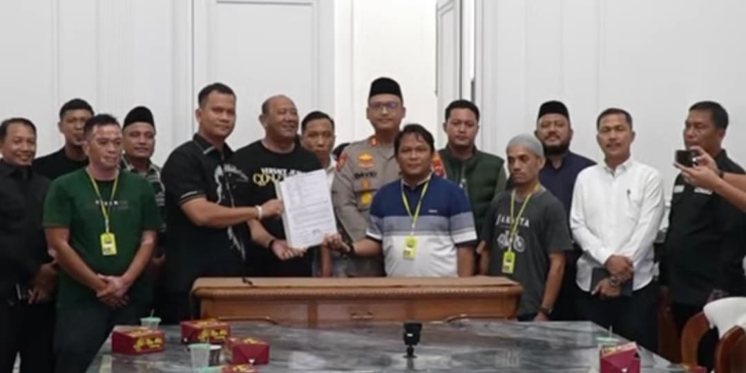 Kesepakatan damai ditandai dengan penandatanganan dokumen perdamaian oleh kedua bela pihak dan unsur terkait, pada Sabtu malam (18/4/26) di rumah dinas Bupati Langkat, Stabat. (koranmedan.id)