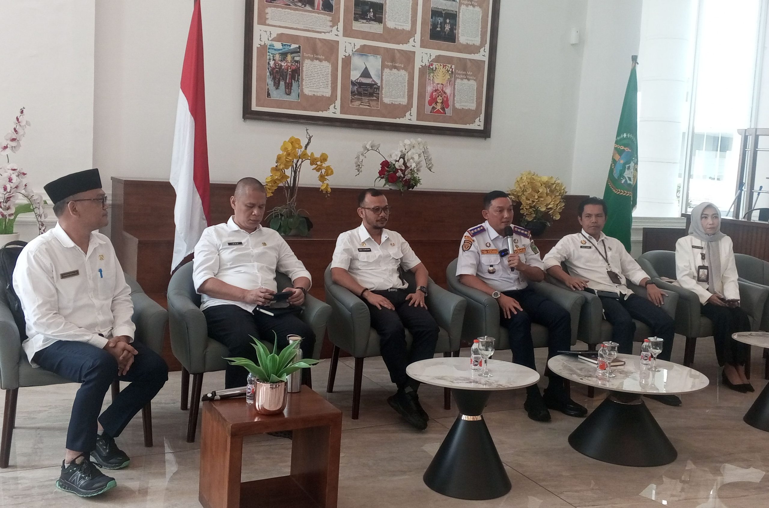 Plt Kepala Dinas Kebudayaan, Pariwisata dan Ekonomi Kreatif Provinsi Sumatera Utara Yudha Pratiwi Setiawan beserta staf saat Konferensi Pers difasilitasi Dinas Kominfo Sumut di Anjungan Dekranasda Lantai 1 Kantor Gubernur Sumut Jalan Diponengoro 30 Medan, Rabu (1/4/2026).
