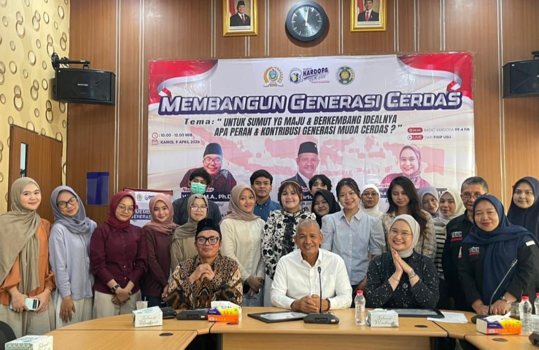 Hal tersebut disampaikan Sutarto dalam kegiatan talkshow, ‘Membangun Generasi Cerdas’, di aula FISIP USU, Kamis (9/4/2026). Selain Sutarto juga tampil debagai narasumber Warjio P.hD akademisi USU dipandu moderator Ira Rizka Lubis.